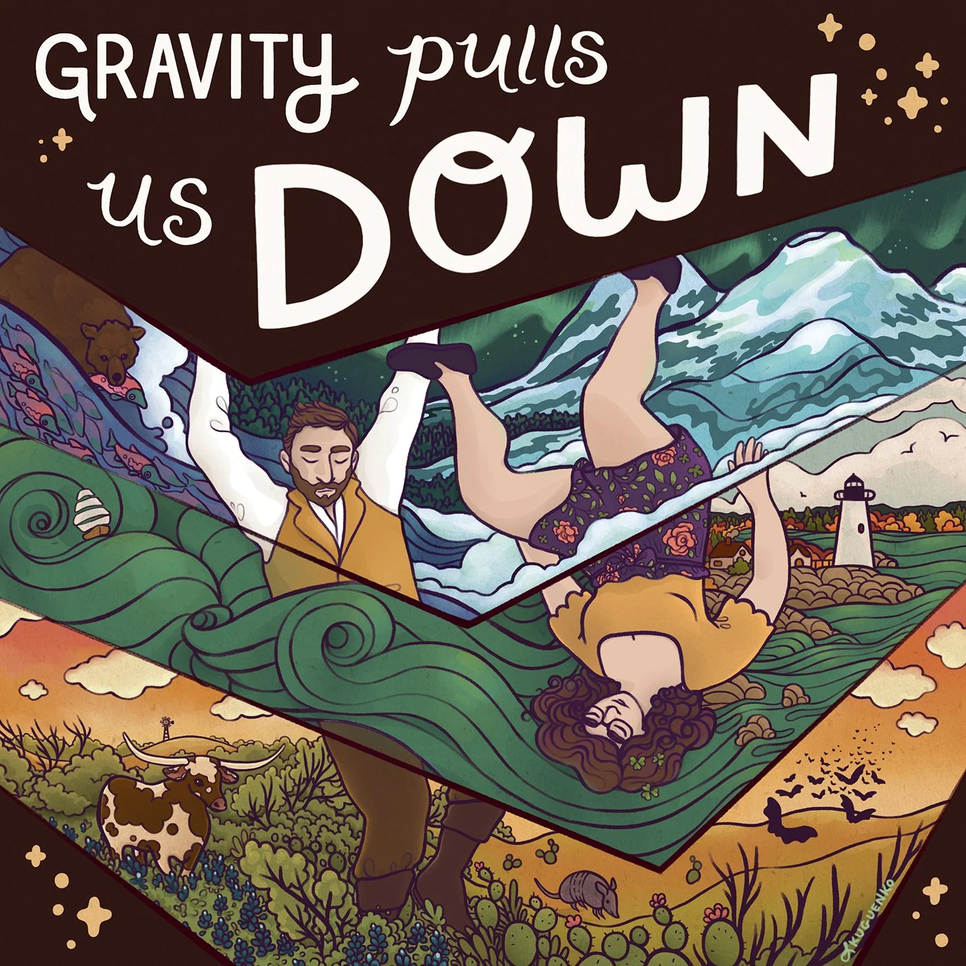 Cover art for Gravity Pulls Us Down, an album by The MollyMoon Band. The cover design features locations that are deeply personal to the band members, and reside in the intersection of nostalgia, hope, and disillusionment—themes prominent in the album.